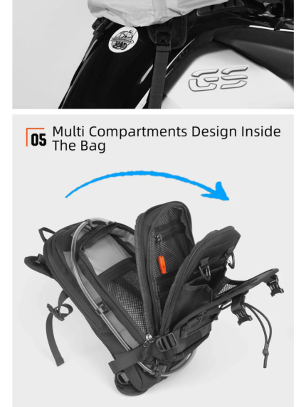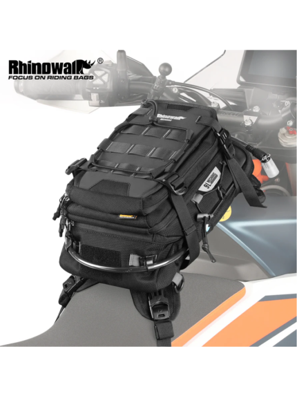 El Bolso de Motocicleta Rhinowalk de estanque es la solución ideal para motociclistas aventureros que necesitan espacio adicional sin sacrificar comodidad ni protección. Su diseño impermeable y su sistema MOLLE garantizan que tus pertenencias estarán seguras y accesibles, sin importar las condiciones climáticas o el terreno.