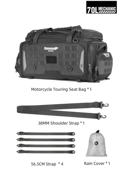 Bolso para moto Rhinowalk expandible de 50 a 70 lt – Impermeable y resistente