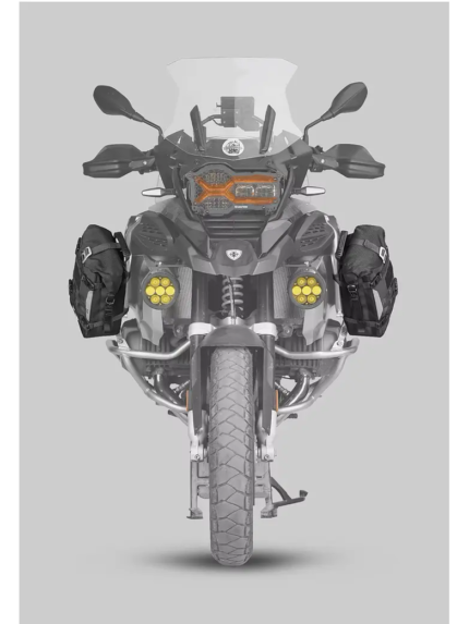 - Dimensiones: 21 x 10,5 x 32/48 cm – Se adapta a la barra de protección o cola de la motocicleta, manteniendo un perfil bajo y aerodinámico.